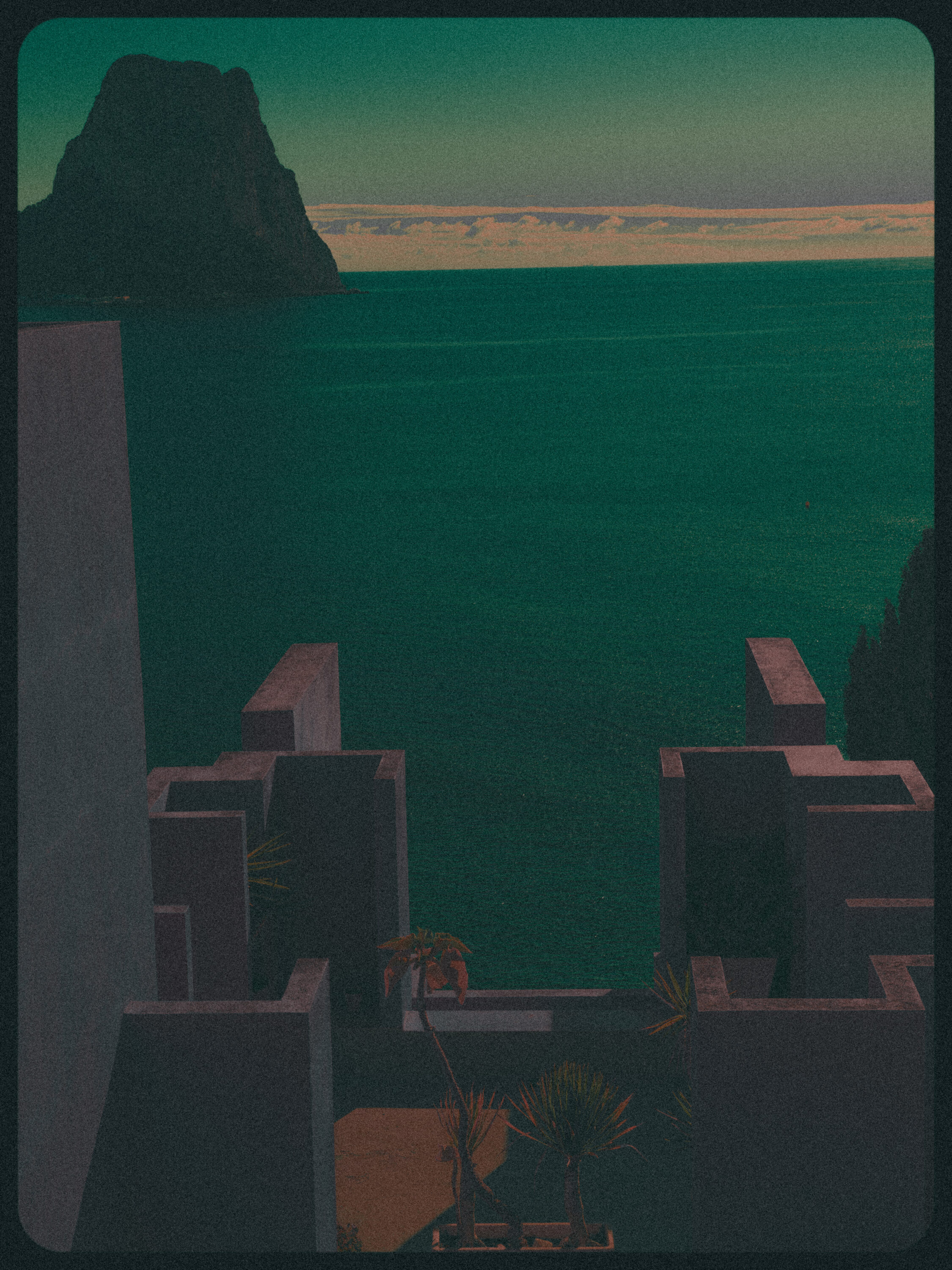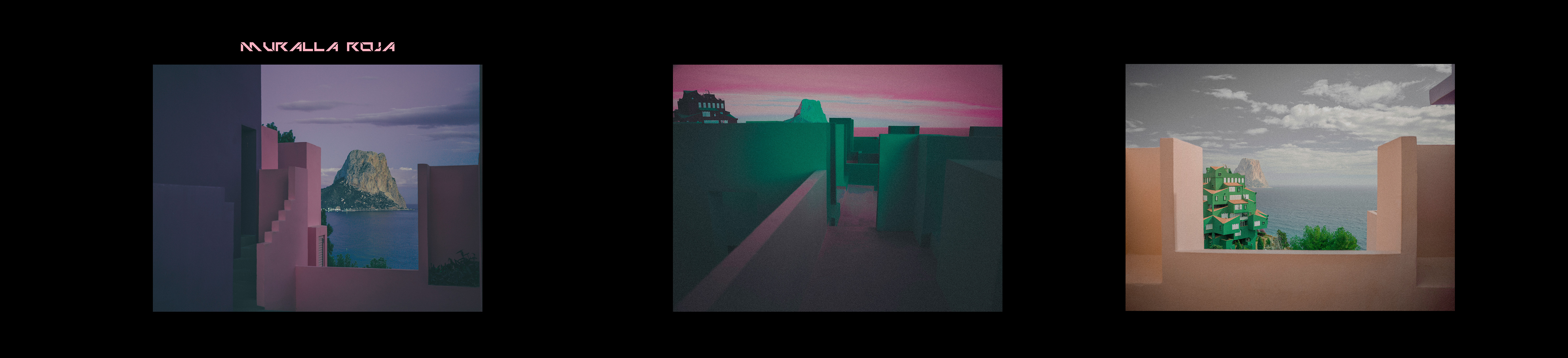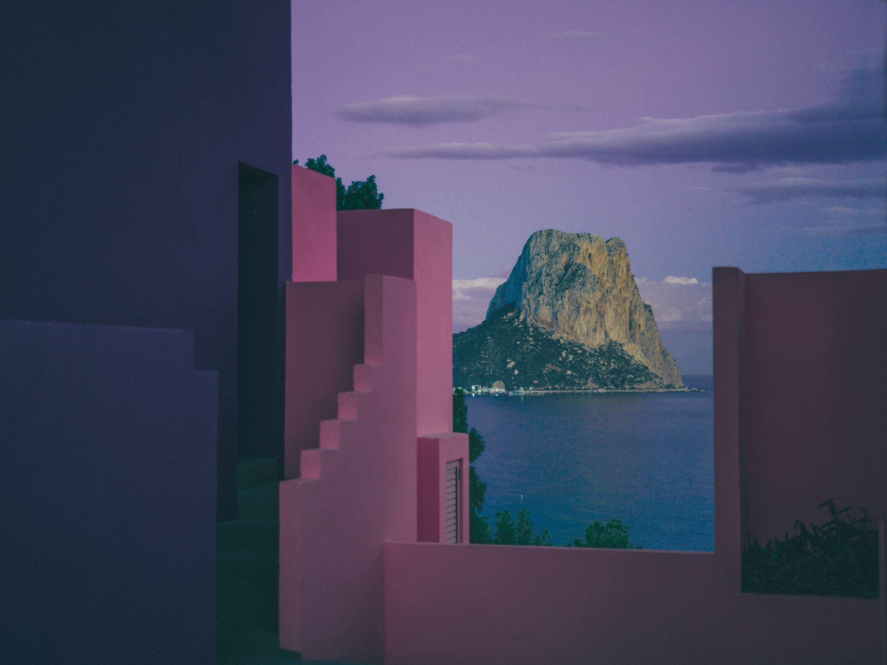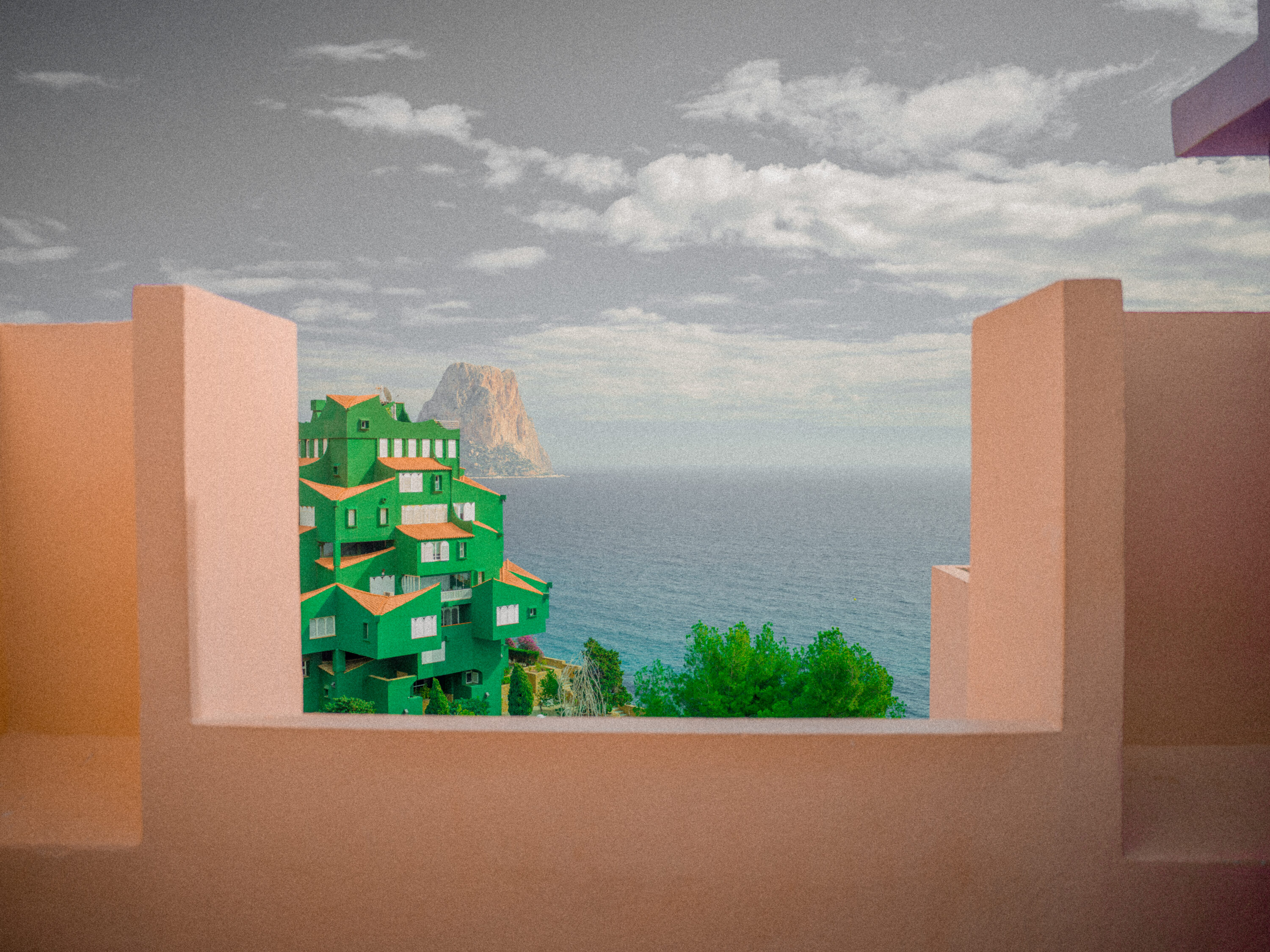 4 views to the »El Peñón de Ifach». Plus extras. Shoot in »La Muralla Roja» iconic building in Calpe, Spain (2025). Camera used Hasselblad X2D. Mix of collage and single photos with color post-process.